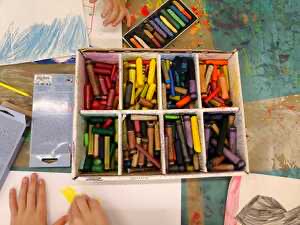 Zeitgleich konnte die Schule Patrick Müller vom INSPIRATION-Verein für sich gewinnen. Er lud die Kinder dazu ein, aus dem Herzen heraus zu malen. Den Kopf auszuschalten, der etwas Konkretes abzeichnen und so malen möchte, dass es dann den Eltern oder den Lehrpersonen gefällt. Losgelöst von angeblicher Schönheit, plädierte er zum intuitiven Malen, stellte die Gefühle und Emotionen in den Mittelpunkt, liess diese durch die Hand und die Farben auf das Blatt kommen, gab dem Herzen Raum. Die Kinder hatten grosse Freude an den mitgebrachten Schatzkisten und konnten es kaum erwarten, bis diese endlich geöffnet wurden. Der Schatz darin war das vielseitige Werkzeug für die Umsetzung: Neocolor, Kohlenstifte, Filz- und Farbstifte, Kreide zum Verwischen, dicke Edding-Stifte und viele mehr. Grosse, weisse Papiere luden ein, Farbe aufzutragen und kreativ zu sein. So entstanden viele ausdrucksstarke Kunstwerke, welche gezielt weder verglichen, noch bewertet wurden. Es bereitete den SchülerInnen grosse Freude, einmal ohne Auftrag und ohne Erwartungen zu malen. Weitere Infos zum Verein finden Sie unter https://www.inspiritation-verein.ch